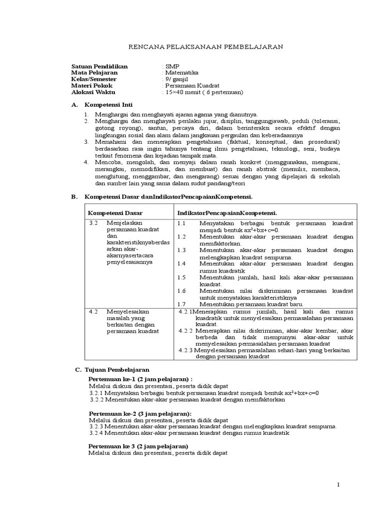 Rpp Persamaan Kuadrat Smp Kurikulum 2013 - Rpp Matematika Smp Kelas 9 K13 Revisi 2017 Semester Ganjil Dan Genap Mediailmu22 / Remember me on this computer.